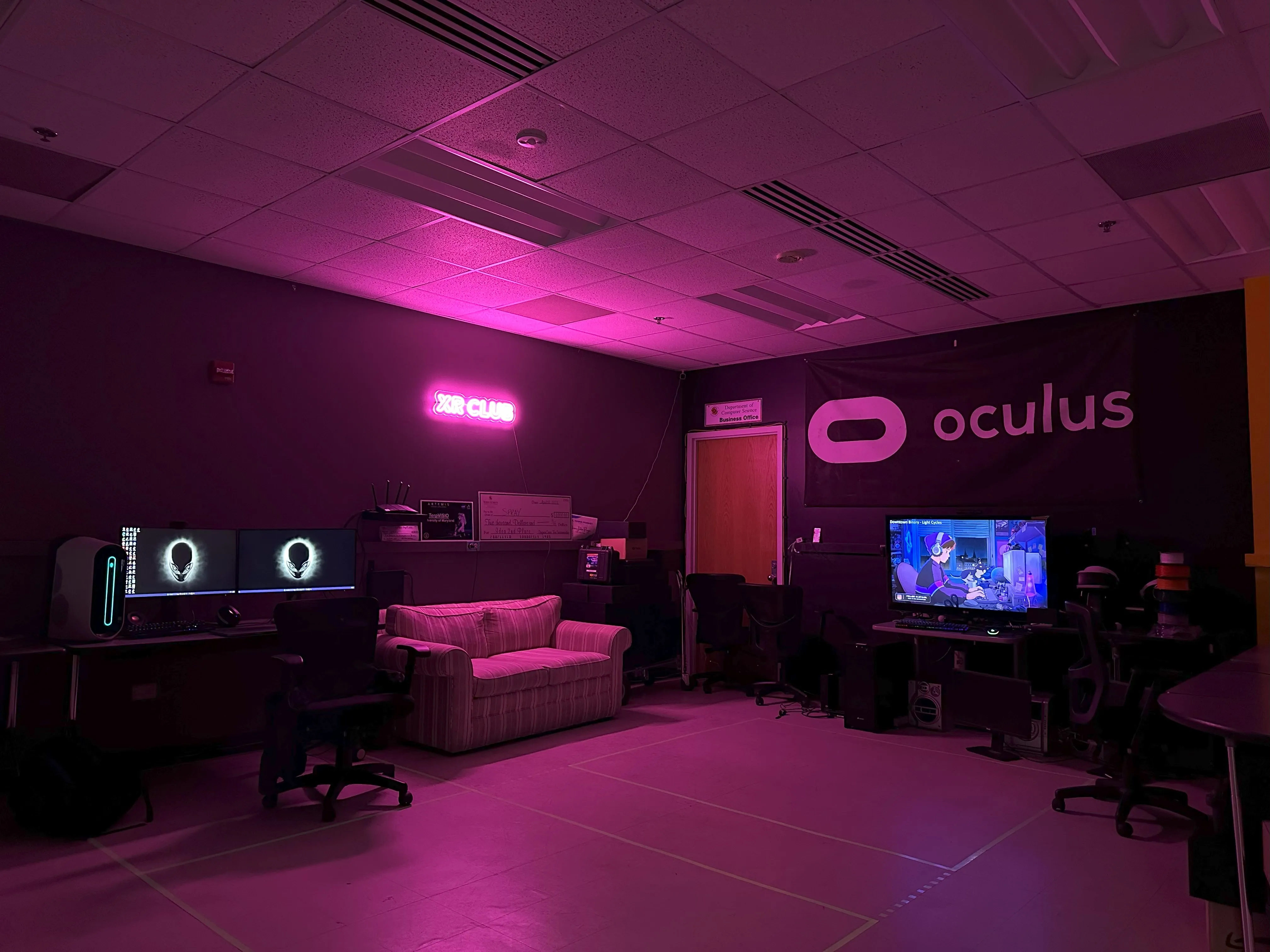 The XR Club at UMD is a social and academic community focused on exploring extended reality technology. Members are welcome to come into our lab, use our headsets, and play games like Beat Saber while making full use of the club's resources in a relaxed, open environment.